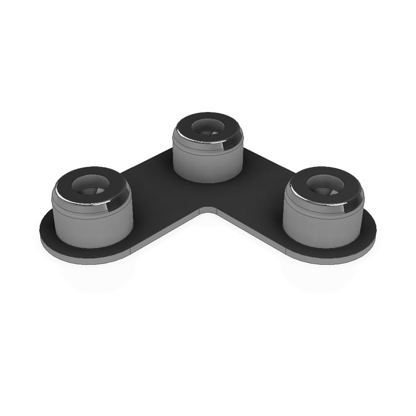 Stabiler, verchromter Stahl-Pin mit 3 Kugeln mit Ø30 mit M8-Gewinde in einem Winkel von 90°.